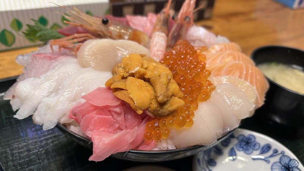 ウトナイ湖で泊まって、翌朝に海鮮丼。これはなかなか強いコンボでした。